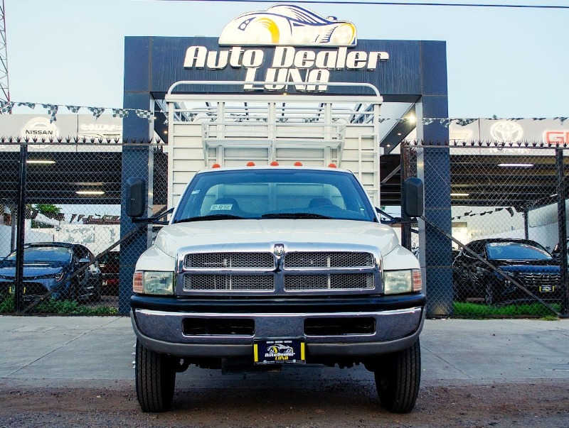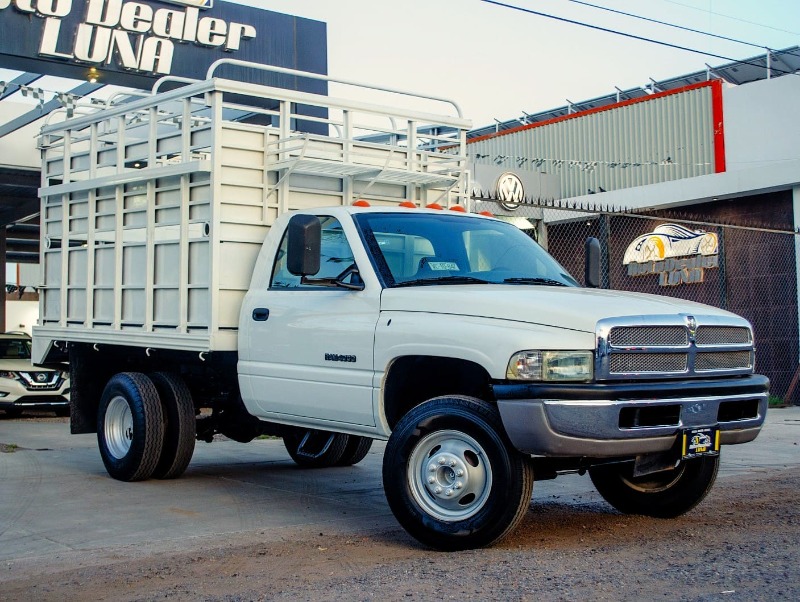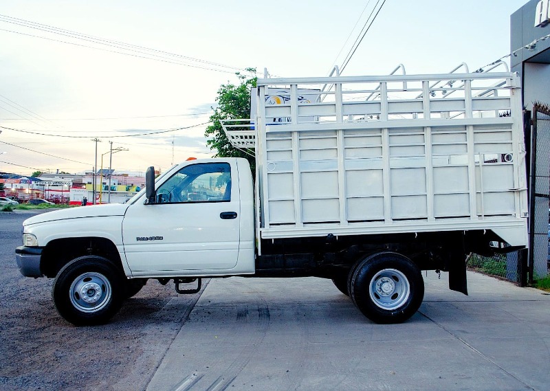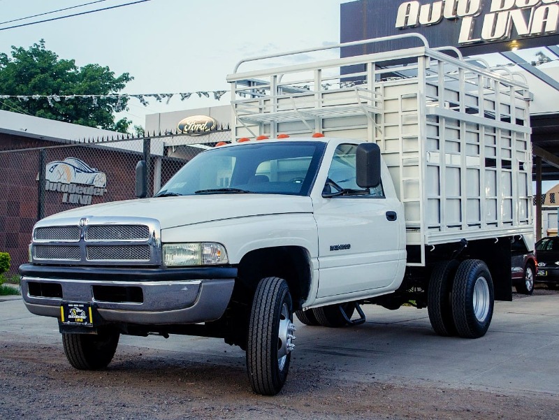 DODGE RAM 4000 DOBLE RODADO 2002. TRANSMISIÓN MANUAL, AIRE ACONDICIONADO, CRISTALES MANUALES, ASIENTO DE 3 PASAJEROS, ESTRUCTURA DE METAL PARA GANADO EN CAJA, ESTRIBOS, PAQUETE DE ARRASTRE, LLANTAS SEMINUEVAS.