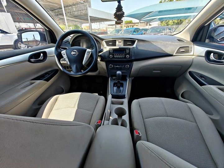 El Sentra SV 2016 está equipado con aire acondicionado, estéreo de agencia con Bluetooth y auxiliar, controles de audio al volante, dirección asistida, vidrios y seguros eléctricos. Además, incluye rines de copas, bolsas de aire frontales, vestiduras en tela y amplio espacio interior. ¡Un auto en excelentes condiciones, listo para ti!